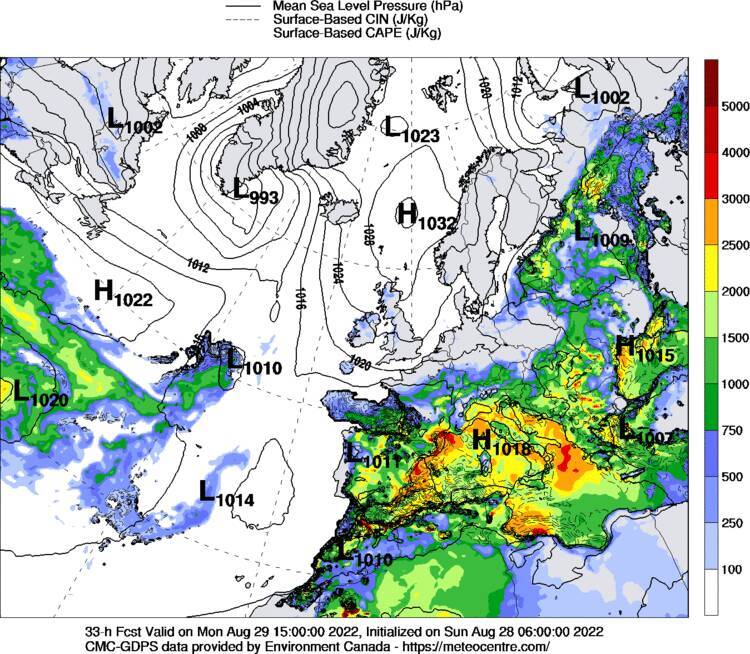 Met de CAPE en LI index kan de mate van stabiliteit van de atmosfeer bepaald worden.Als de LI (Lifted Index) een hoog negatieve waarde heeft, zal de opgewarmde lucht ter plaatse snel stijgen waardoor (onweers)wolken sneller gevoed worden.De CAPE (Convective Available Potential Energy) geeft aan hoe hoog de energiewaarde is van een stijgende hoeveelheid lucht. Hoe hoger de energiewaarde hoe sneller de lucht zal stijgen. De LI en CAPE geven dus een goede indicatie of er onweer op komst is. Een lage LI waarde (< -6°C) tesamen met een hoge CAPE (> 2500 J/kg) duidt op een onstabiele tot zeer onstabiele lucht, wat kan resulteren in onweer.